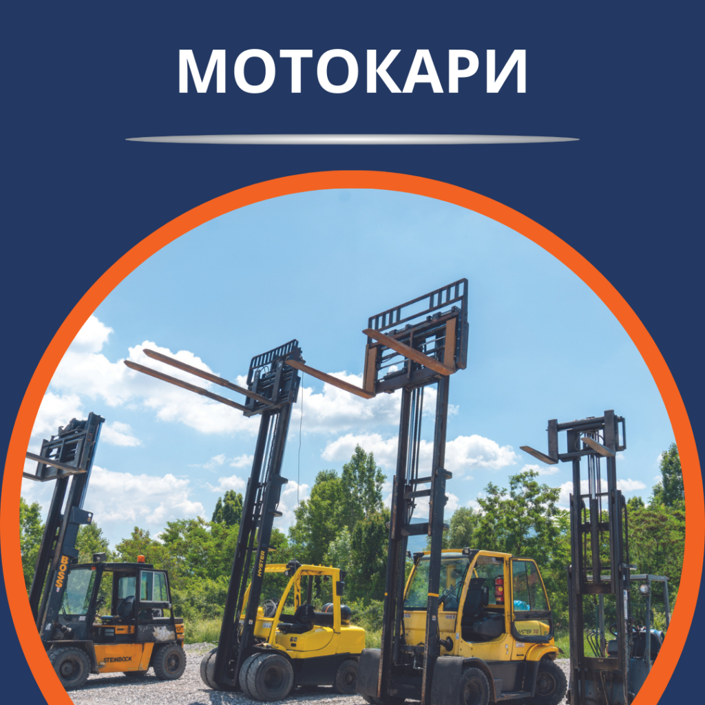 - Различни видове мотокари – до 1500 кг, до 4000 кг и специализиран с двойна гума до 8000 кг и мотокаристи с дългогодишен опит на денонощно разположение (24/7)