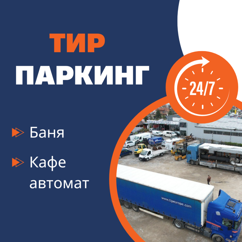 – Денонощен ТИР паркинг с баня и кафе автомат